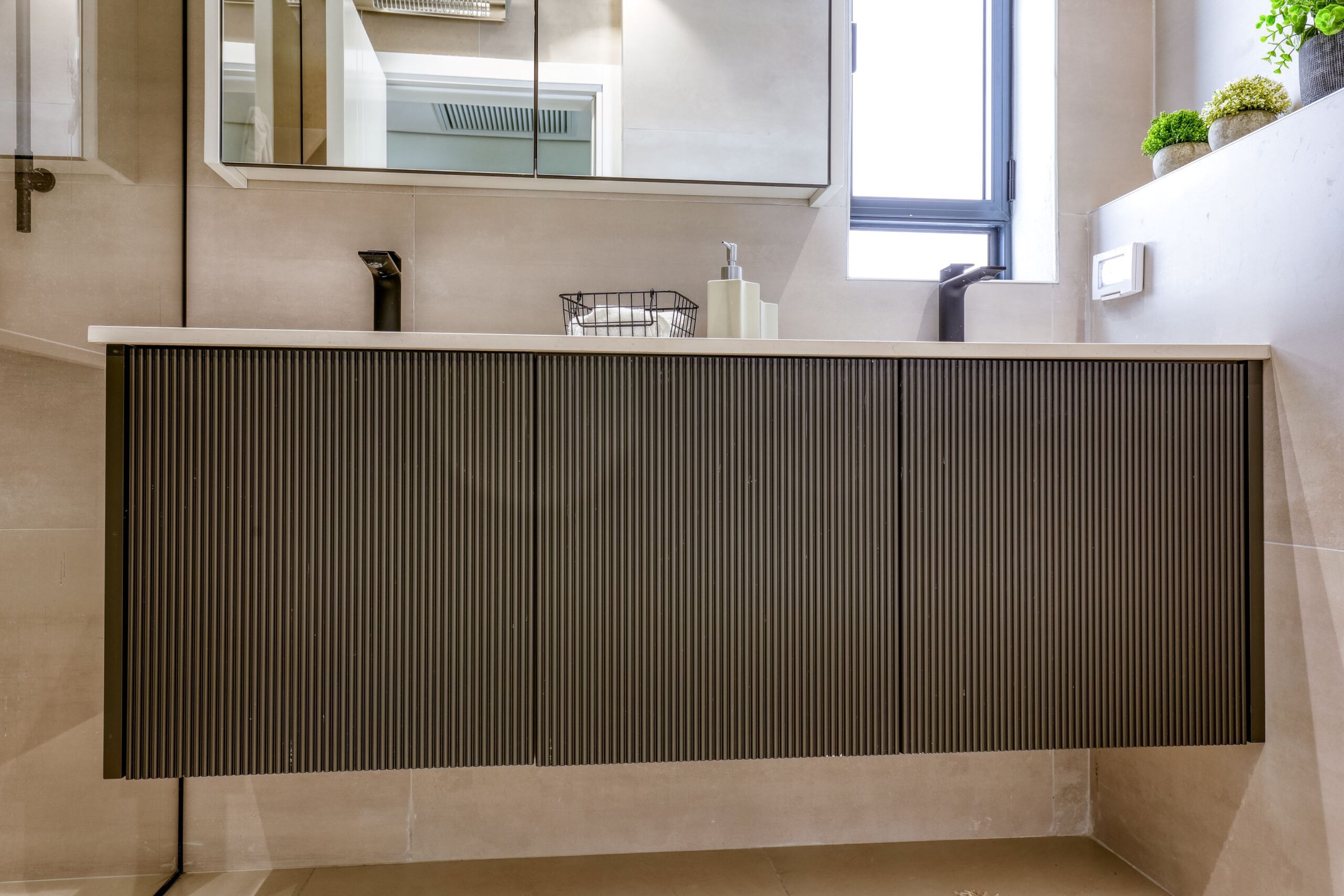 ארונית אמבטיה בצבע כהה