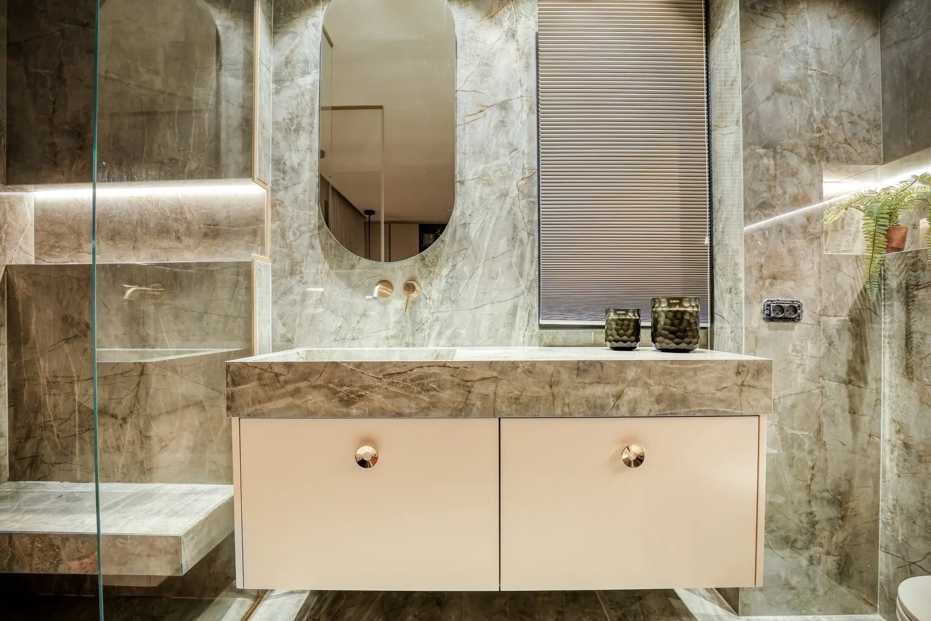 חדר אמבטיה בצבע חום